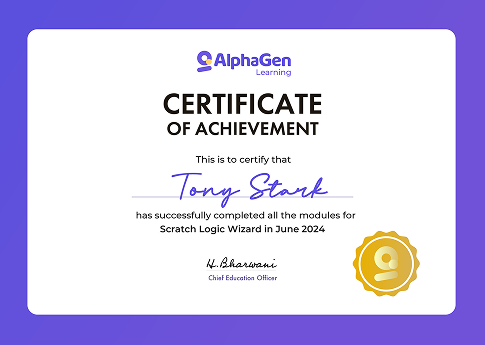When your child completes our coding and technology courses, they’ll receive a special certification that celebrates their newfound skills and accomplishments. This isn’t just a piece of paper—it’s a badge of honor that shows they can create, innovate, and solve problems like a pro!