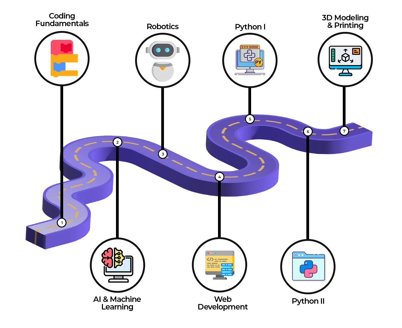 Unlike single modules, our learning journey fosters a deeper understanding of coding and artificial intelligence, setting your child up for success in the digital world. This structured approach not only builds essential skills but also ensures long-term engagement and growth.